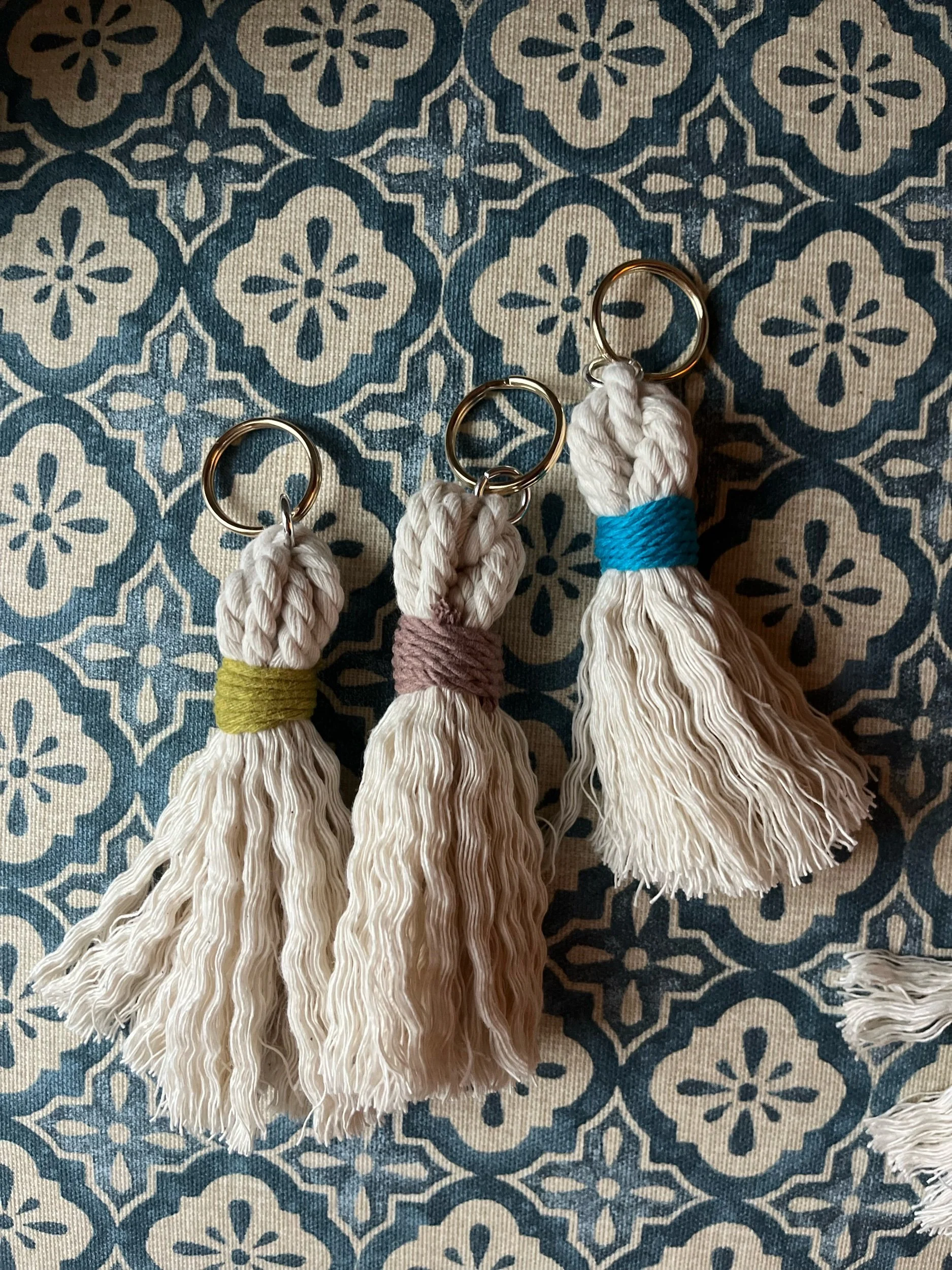 Shop › Macrame Tassel Keychain Image 1 of 5 Image 2 of 5 Image 3 of 5 Image 4 of 5 Image 5 of 5 Macrame Tassel Keychain $10.00 Color: Chartreuse Maybe Turquoise Add To Cart Added! Reviews Reviewer Name Review Date Star Rating Description Posted on Etsy Product Show More You Might Also Like Linen Lotus Macrame Earrings Only 1 available