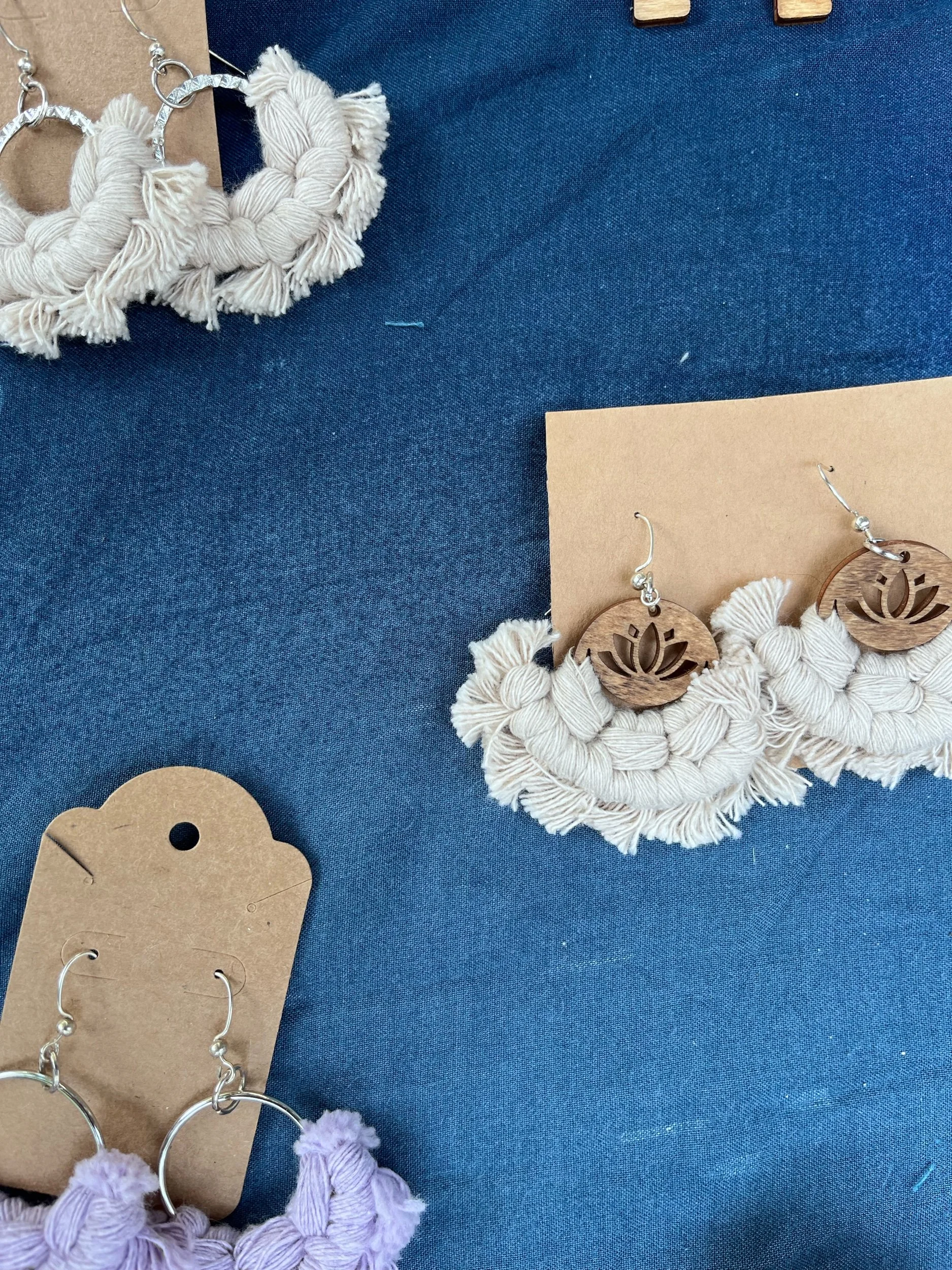 Shop › Linen Macrame Hoop Earrings Image 1 of 3 Image 2 of 3 Image 3 of 3 Linen Macrame Hoop Earrings $25.00 Only 1 available Add To Cart Added! Reviews Reviewer Name Review Date Star Rating Description Posted on Etsy Product Show More You Might Also Like Lime Green Macrame Tassel Earrings Only 1 available Baby Pink Macrame Tassel Earrings Only 1 available Linen Macrame Groovy Earrings Only 1 available Linen Macrame Diamond Fringe Earrings Only 1 available Linen Macrame Lotus Earrings Only 1 available